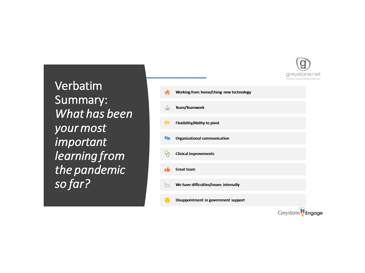 - The uncertainty of when things can begin to return to "normal" and the isolation felt - both by the staff working remotely and those remaining on site.